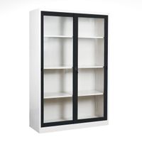120 cm. Lemari pintu kaca geser tinggi penuh dengan 3 rak yang dapat disesuaikan dan kunci. Tersedia juga rak tambahan yang dapat dibeli.