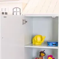 House Cabinet Size (WxLxH) 90x46x173 cm. Products can be made to order in other colors.There is a coat hanger inside. Can be used as a children's wardrobe The inner layer can be removed and can be used in 2 types. There are 5 layers inside, 4 layers can be adjusted, there will be 1 Fix layer to support the weight well. MDF material. Non-toxic spray paint. You can change the letters on the front of the cabinet 10-12 English characters.