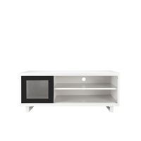 TV stand with shelf and sliding glass door. Available for big sized TV. Cable hole on back.