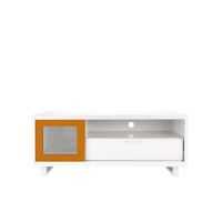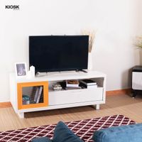 TV stand with drawer and sliding glass door. Available for big sized TV. Cable hole on back. "All KIOSK Furniture products are made from rust-proofed and powder-coated steel. The structure comes with a 6-year warranty. (It is strictly forbidden to remove the warranty sticker. If the sticker is removed, the warranty will be immediately voided.)"