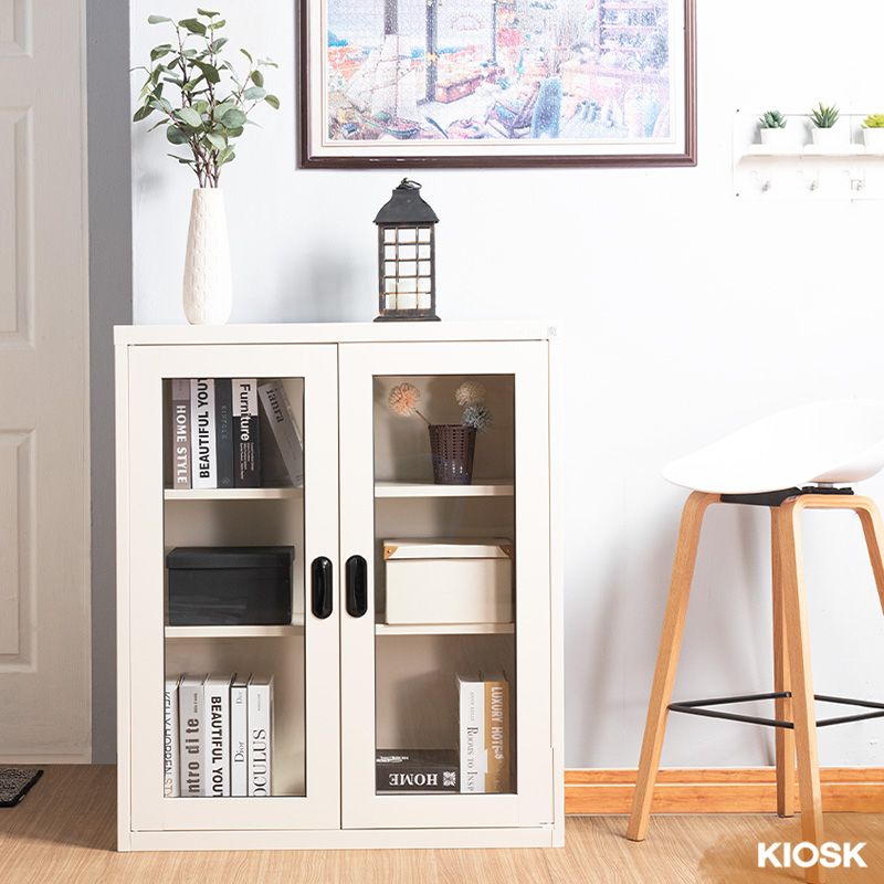 Half height glass door cabinet with 2 adjustable shelves. Size: W88 *D30*H105 cm loading capability up to 50 kgs. per each shelf MAX book collection is special designed for heavy load in all kind of books; Text book , Magazine etc