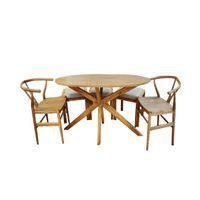 Made of rubber wood, consisting of 1. Table model Oval cross 1 pc. 2. Wooden Chair-Wishbone model 2pcs 3. Stool -Beige Sheep model 2 pcs.