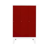 Locker 3 doors (3 compartments). Each compartment includes 1 hanging rod, 1 shelf(non adjustable) and individual key. Easy to clean with high leg design.