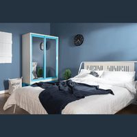 A tall sliding glass-door wardrobe with 1 hanging rail and 1 shelf (including tall legs) with 2 mirror options. Model for the same price (frosted glass or mirror) including clothes rail that can support full space, 1 sheet can be removed. All KIOSK Furniture products are made from rust-proofed and powder-coated steel. The structure comes with a 6-year warranty. (It is strictly forbidden to remove the warranty sticker. If the sticker is removed, the warranty will be immediately voided.