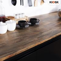 Solid wood top, made of Neem, 23 mm thick, Dark Walnut stained with 3 layers of lacquer for waterproof and anti-fungal.